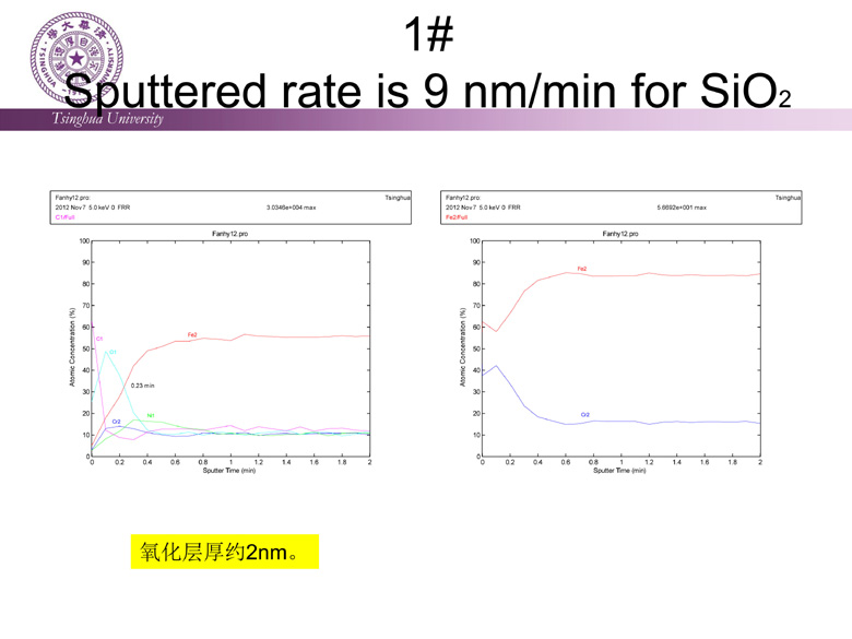 清华大学电子能谱中心检测报告,经斯特福CitriSurf 3050 处理后不锈钢材料表面钝化膜厚度约2纳米