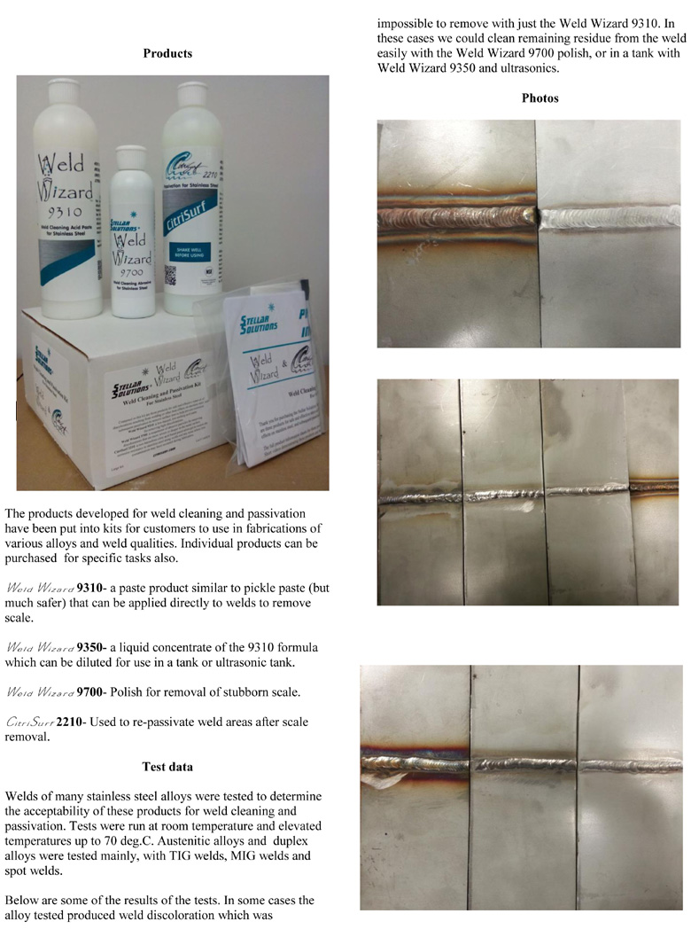 2014年, 于澳大利亚举办的“泛太平洋不锈钢研讨会”重点研究及探讨了不锈钢焊接除锈的课题。 Stellar Solutions Inc.生产的WELD WIZARD9350系列祛除不锈钢焊接变色/氧化皮产品。以高效祛除氧化皮、焊接变色。以及对环境、人体友好性。获得大会成员的一致推荐。