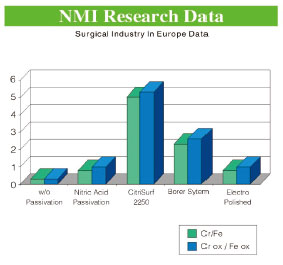| 3:钝化目的:去除表面游离铁,并在富铬层上形成稳定的氧化铬保护膜。 方法: CitriSurf柠檬酸钝化溶液:将器械浸入适当浓度的柠檬酸溶液中。这是一种环保安全的替代方法,在医疗器械行业中应用日益广泛。 处理条件: 严格控制溶液浓度、温度和浸泡时间。 |